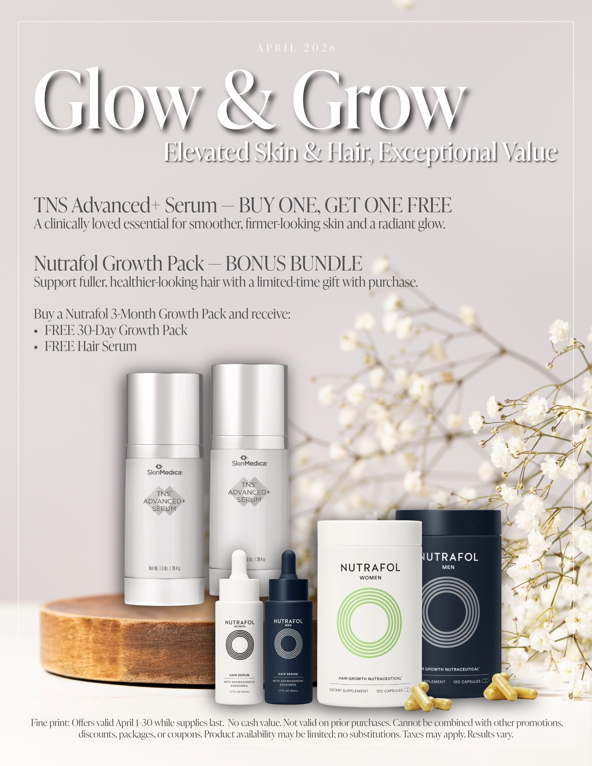Offers valid April 1–30 while supplies last. Limit one per patient per promotion unless otherwise specified. No cash value. Not valid on prior purchases. Cannot be combined with other promotions, discounts, packages, or coupons. Product availability may be limited; no substitutions. Taxes may apply. Results vary.