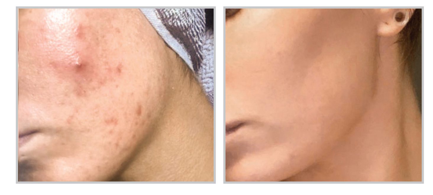 Treatment is performed in-office. Your eyes are protected and the provider delivers light in a structured sequence designed for acne. Most patients describe the sensation as gentle warmth. Sessions are typically quick.